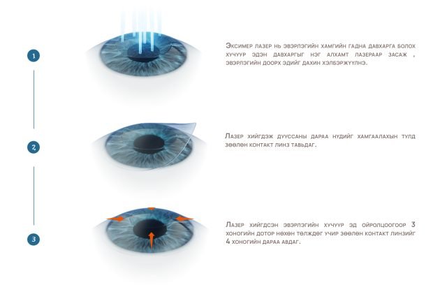 TransPRК нь нүдэнд ямар ч багаж хүрэлцэхгүй хийгддэг буюу нүдийг бумбадах, эвэрлэгт зүслэг хийх шаардлагагүйгээр хугарлын гажгийг засдаг цорын ганц мэс засал юм. Эксимер лазераар эвэрлэгийн өнгөн хэсэг түүний доорх эвэрлэгийн эдэд үйлчилж хэлбэрийг өөрчилж хугарлын гажгийг засдаг мэс засал.